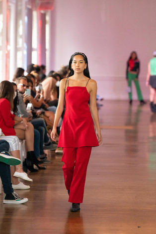 Un jeu de superposition et des techniques offrant un nouvel aspect aux matières, les looks de Mayeth Sigue Codoy se distinguent grâce aux coupes volumineuses et asymétriques qui seraient parfaitement adaptées pour de belles occasions.